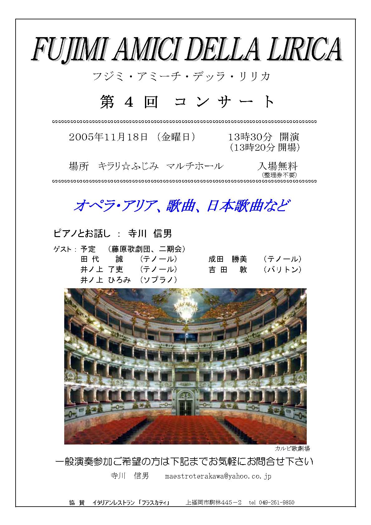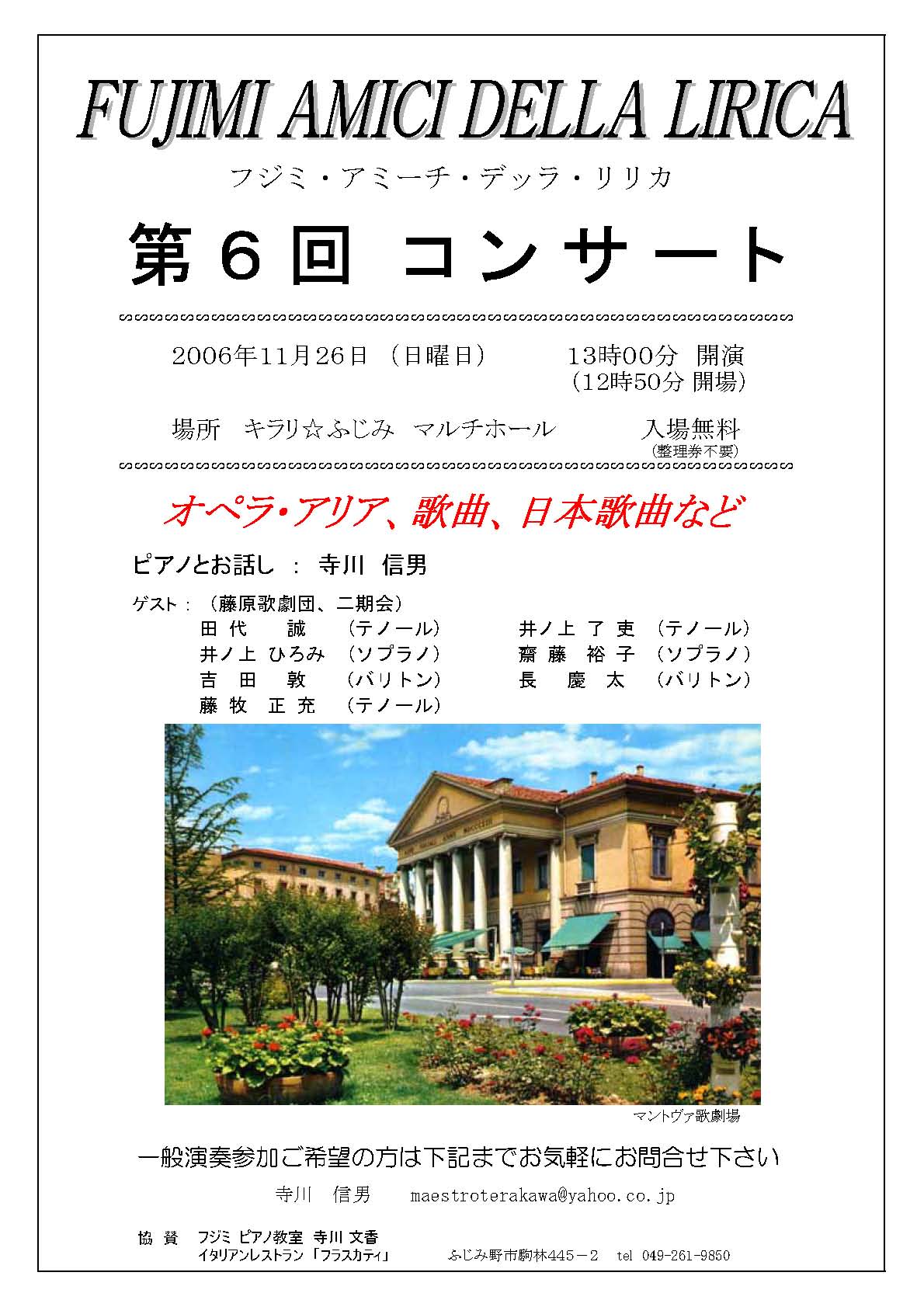 オペラ好きにはたまらない公演です。しかも無料!! |