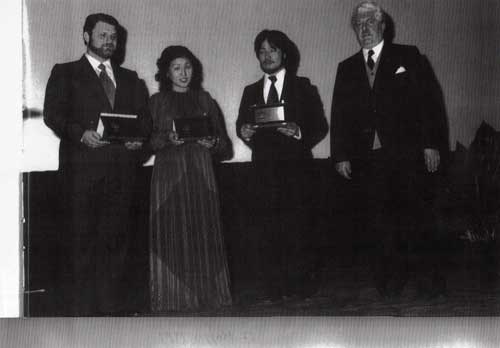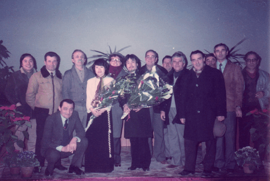 1981年5月、ロヴェレートにて、左から、ジュゼッペ・モリーノ、塚田京子、マエストロ寺川、ポーラ先生。この演奏会も、会場割れんばかりの、拍手で満たされ、忘れえぬ一日となった.