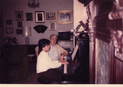 1981年8月、レッジョ・エミーリアにて、イタリア、歴史的大歌手フェルッチョ・タリアヴィーニ宅にて、今は亡き、日本の誇るべきソプラノ歌手、塚田京子さんのレッスン風景。タリアヴィーニも大いに歌う、その、何と言うべきか、素晴らしき音楽的な霊感に満ちた時空・・・・・タリアヴィーニ、と、キョウコ・ツカーダ・・・・・素晴らしい一日となった。左から、フェルッチョ・タリアヴィーニ、マエストロ寺川、塚田京子さん!!! |
